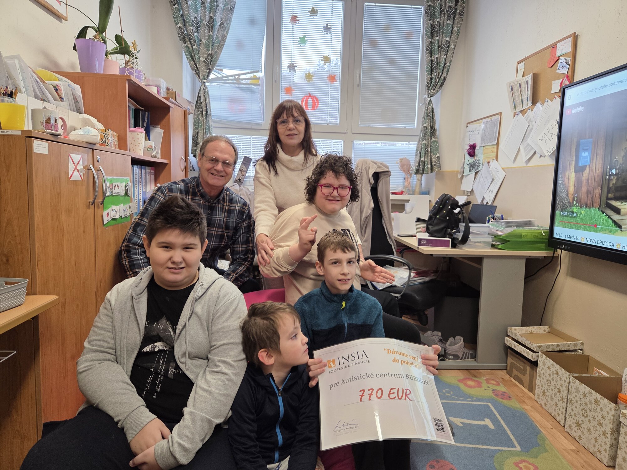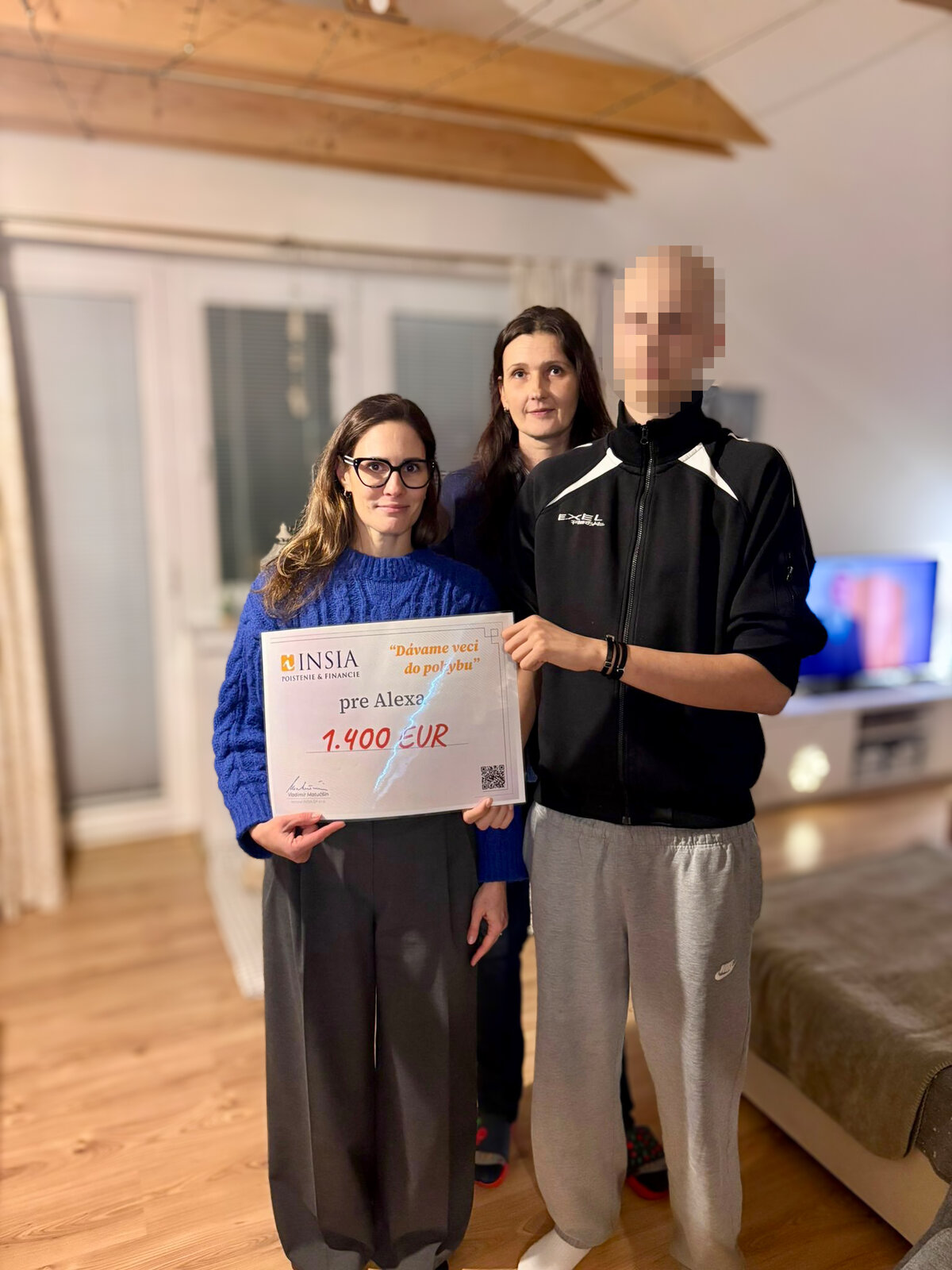 Rozhodli sme sa venovať sumu 4 000 EUR, ktorú by sme inak minuli na vianočné darčeky pre našich finančných partnerov. Oslovili sme ľudí z celej siete INSIA, aby sa rozhliadli okolo seba a nominovali príbehy, ktoré poznajú - z rodín, od priateľov, od klientov. Z týchto nominácií sme vybrali 6 príbehov a prerozdelili medzi ne celú sumu podľa toho, ako členovia INSIA hlasovali. Každý mal jeden, veľmi silný hlas.