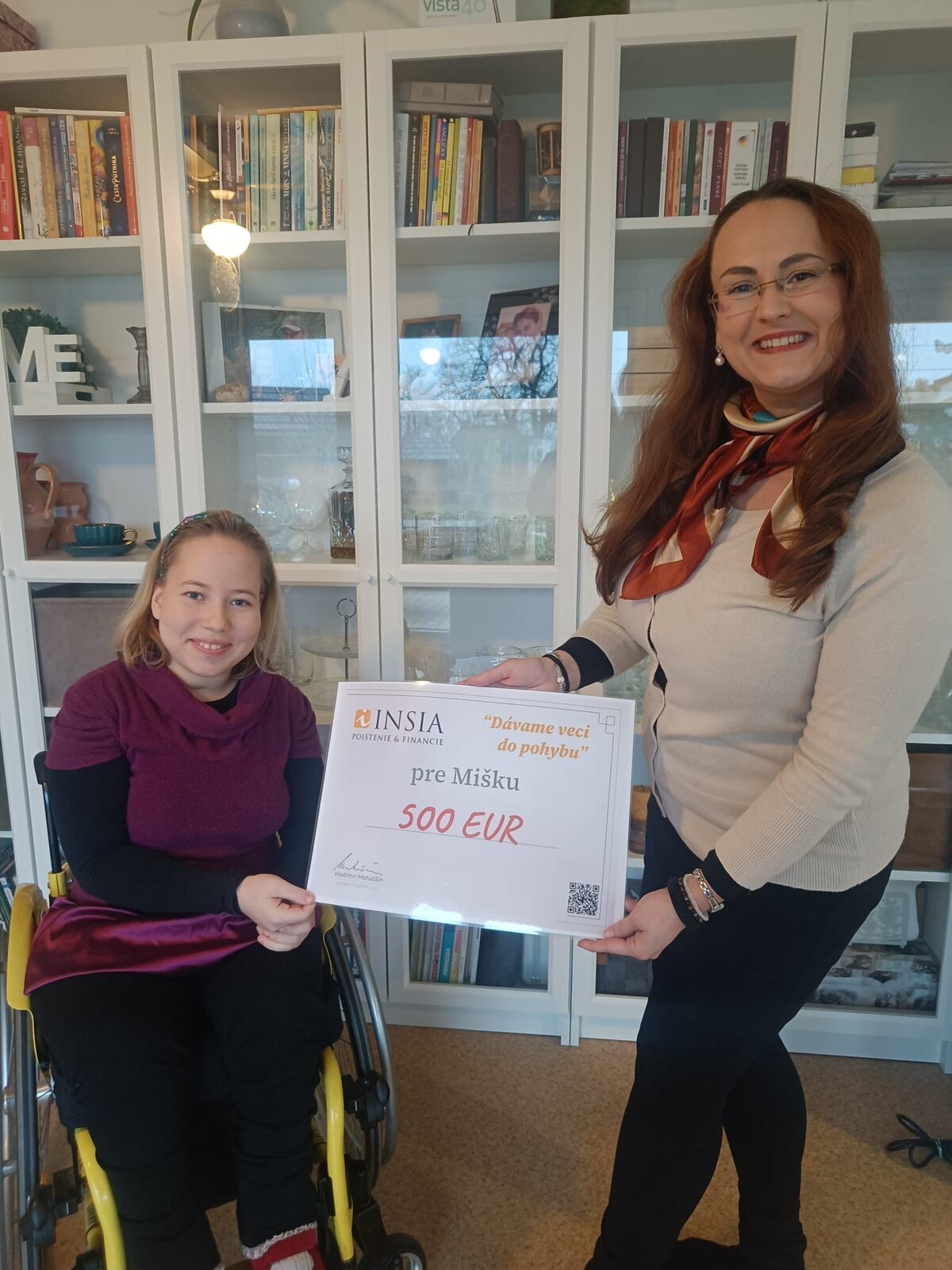 Zostala síce na vozíku, no nevzdáva sa. Bojuje ďalej – s odhodlaním a nádejou, že sa raz postaví. Viac o Miške nájdete TU.